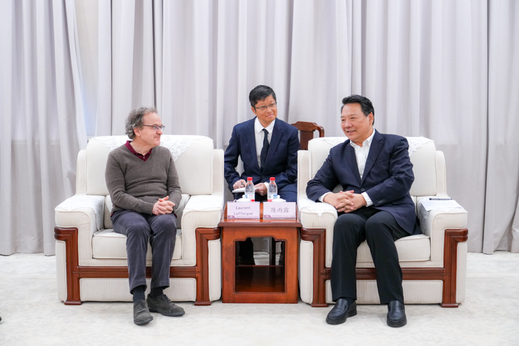 President Chen extended sincere welcome to Prof. Lafforgue for his participation in the Chern Lecture Series on the occasion of NKU’s 106th anniversary. Prof. Lafforgue is a world-renowned mathematician with groundbreaking contributions to topos theory and its potential applications in communications, artificial intelligence, and other fields. President Chen reaffirmed NKU’s commitment to advancing the development and interdisciplinary integration of mathematics and artificial intelligence. He expressed his hope that Prof. Lafforgue would share insights from Sino-French collaborative training of mathematical talent, provide guidance on disciplinary development and talent cultivation, and deepen cooperation with NKU on disciplinary development.