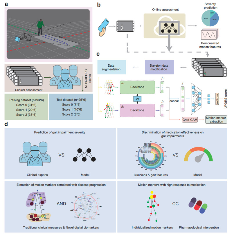 The study proposes an innovative deep learning framework that enables precise quantitative assessment of gait impairment severity in Parkinson’s disease (PD) and accurate assessment of subtle medication effects that are difficult to capture with traditional clinical scales, such as the UPDRS, using only smartphone-recorded walking videos. The team further identified multiple novel digital biomarkers highly responsive to disease progression and medication effects using this framework.