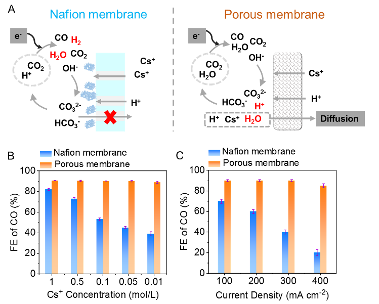 Recently, Prof. Luo Jingshan’s research group at the College of Electronic Information and Optical Engineering, Nankai University (NKU) reported new findings in the field of acidic membrane electrode assembly for electrocatalytic carbon dioxide (CO₂) reduction in Nature Communications. The research team proposed using porous membrane in place of conventional Nafionmembrane to enable highly selective and stable electrocatalytic CO₂conversion under acidic conditions, thereby providing a new soluti