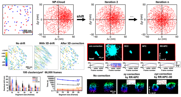Recently, a research team led by Prof. Pan Leiting and Prof. Xu Jingjun from the School of Physics and TEDA Institute of Applied Physics, Nankai University, in collaboration with Prof. Xu Ke’s research group at the University of California, Berkeley, USA, published a paper titled “Fast and robust drift correction for single-molecule localization microscopy” inNature Communications. The study introduces theNearest Paired Cloud (NPC) drift correction algorithm relying exclusively on coordinate inf
