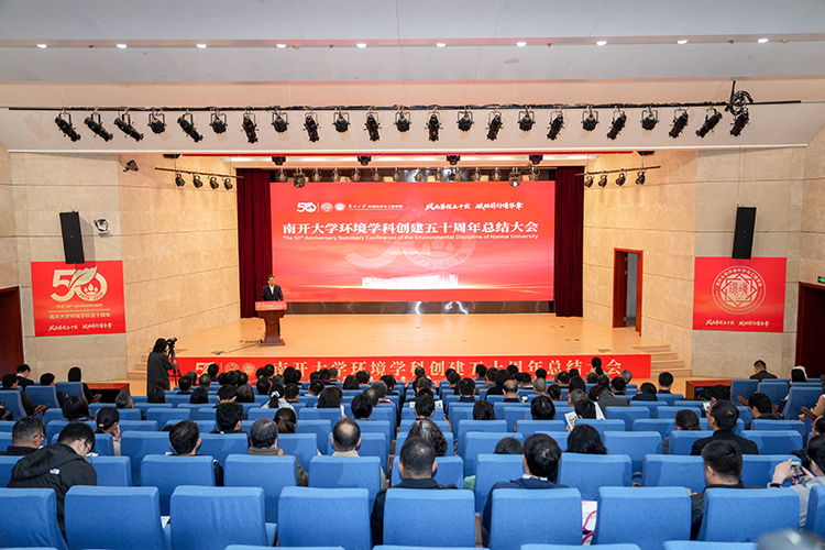 On October 26, Nankai University held a conference on Jinnan Campus to mark the 50th anniversary of its environmental discipline. More than 300 alumni gathered at the Lecture Hall of the West Building,to celebrate the milestone.The event opened with the solemn playing of the national anthem.Attendees included: Yang Qingshan, Secretary of the CPC Nankai University Committee; Jiang Guibin, Academician of the Chinese Academy of Sciences and Research Fellow at the Research Center for Eco-Environment